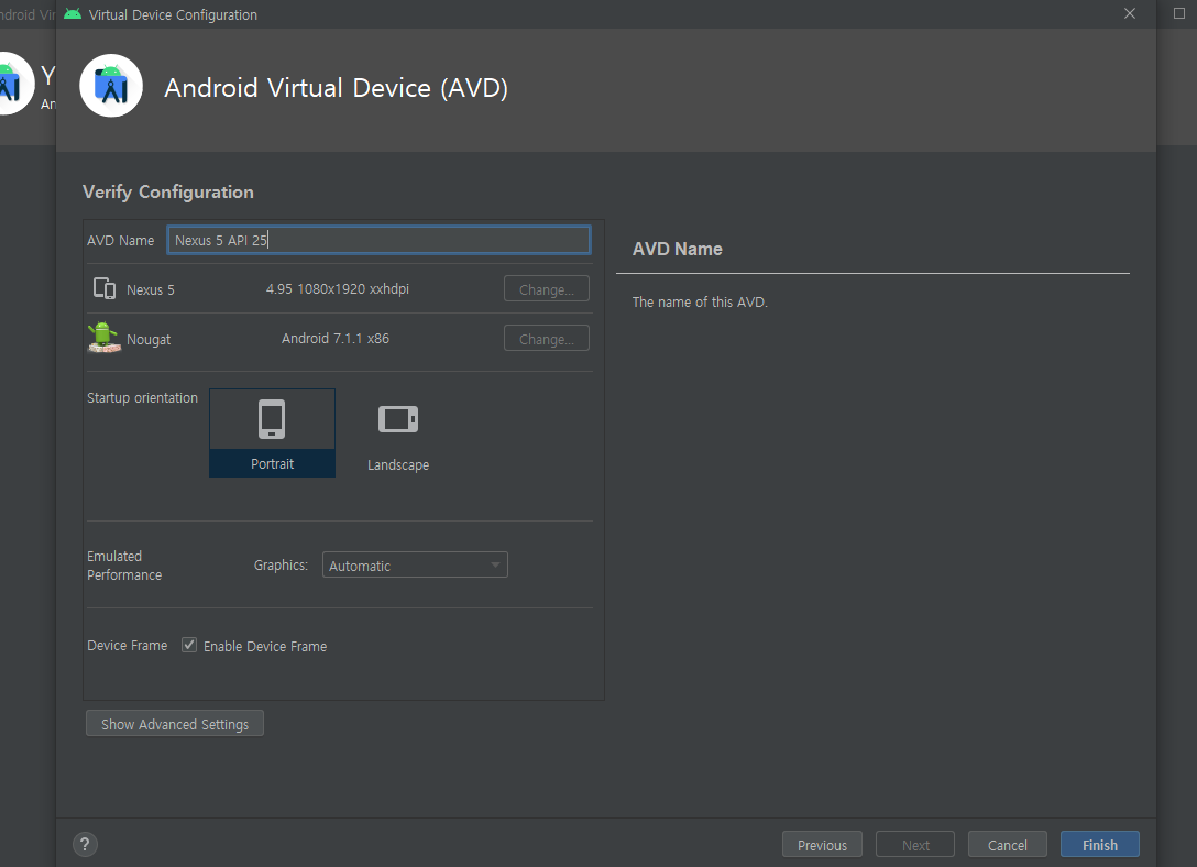 세로모드 -> Finish