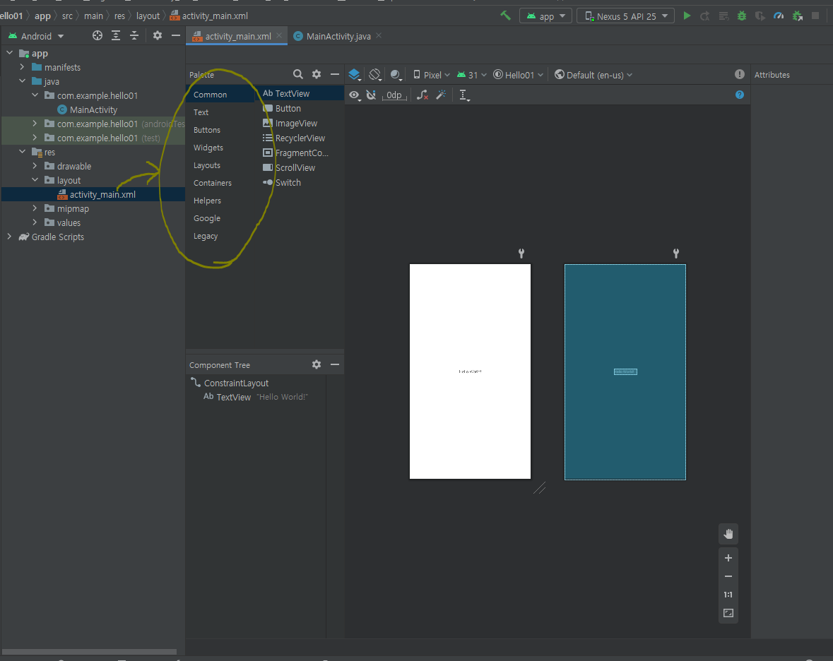 .java : 액티비티 문서(java파일에서 xml문서를 인식함)