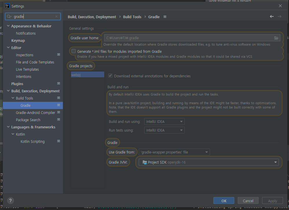 4) Gradle 빌드 설정을 IntelliJ IDEA 로 바꿔준다.