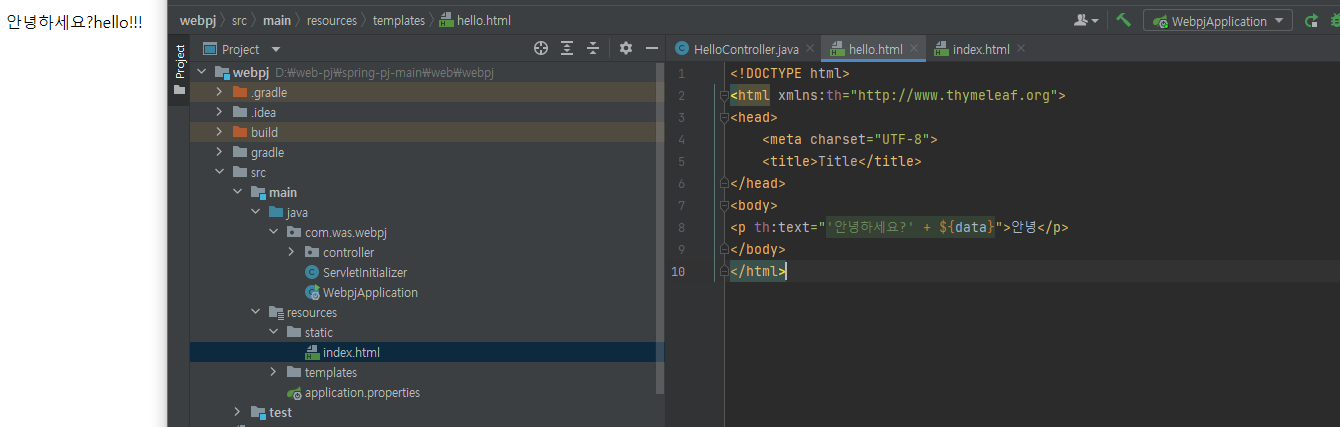 [THYMELEAF][http-nio-8080-exec-1] Exception processing template "hello": Error resolving template [hello], template might not exist or might not be accessible by any of the configured Template Resolvers