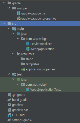 src하위의 main과 test, main하위의 java와 resources폴더가 있고